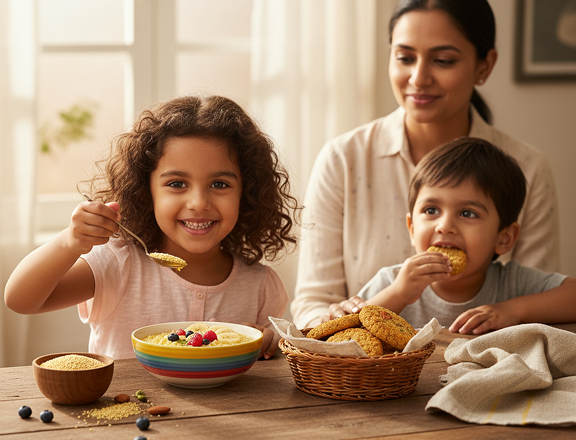 Millets aren’t just super foods—they’re heritage foods. Naturally rich in fiber, iron, and calcium, these golden grains fuel growing bodies with nourishment and joy. We turn them into treats kids beg for—and parents feel good about.